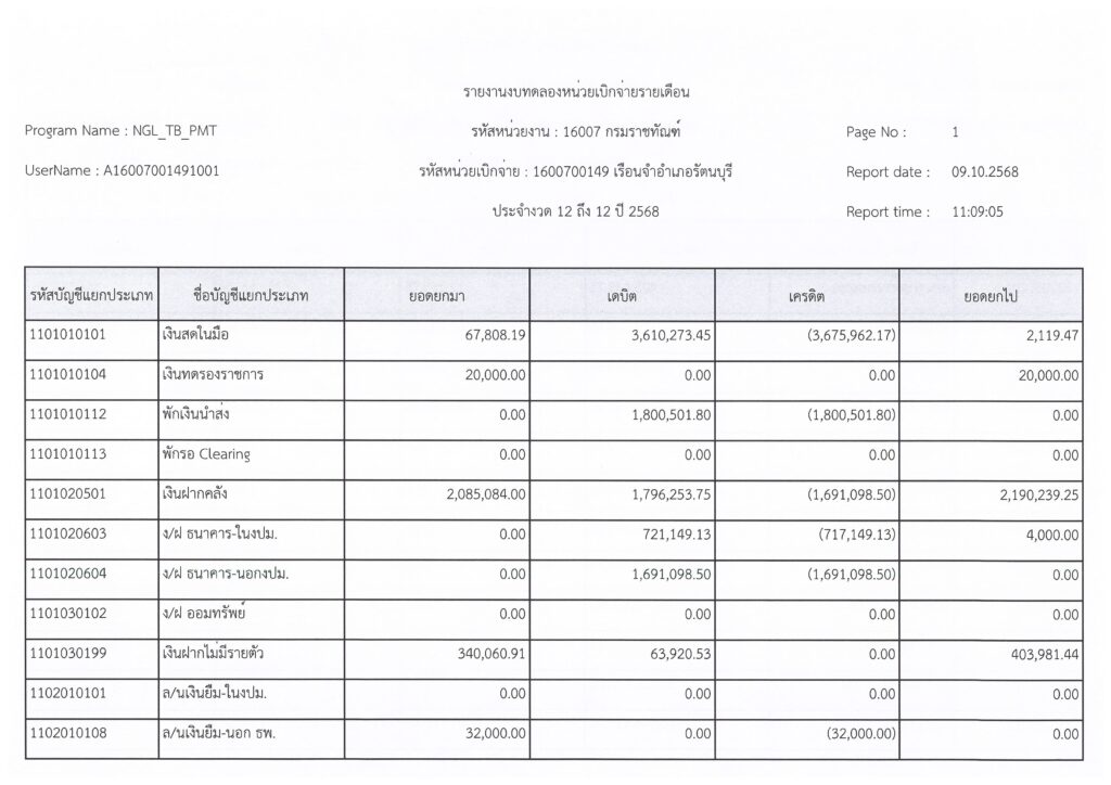 รายงานงบทดลองหน่วยเบิกจ่ายรายเดือน ประจำเดือนกันยายน 2568