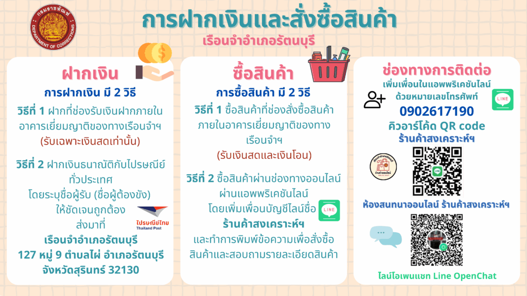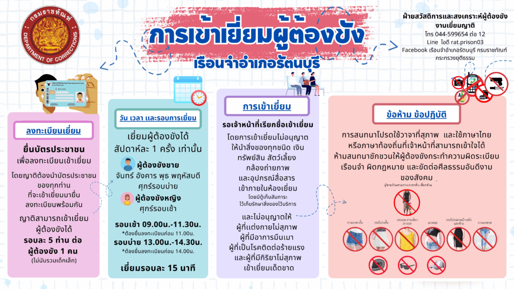 ระเบียบและข้อปฏิบัติในการติดต่อเยี่ยมปกติและออนไลน์ เรือนจำอำเภอรัตนบุรี